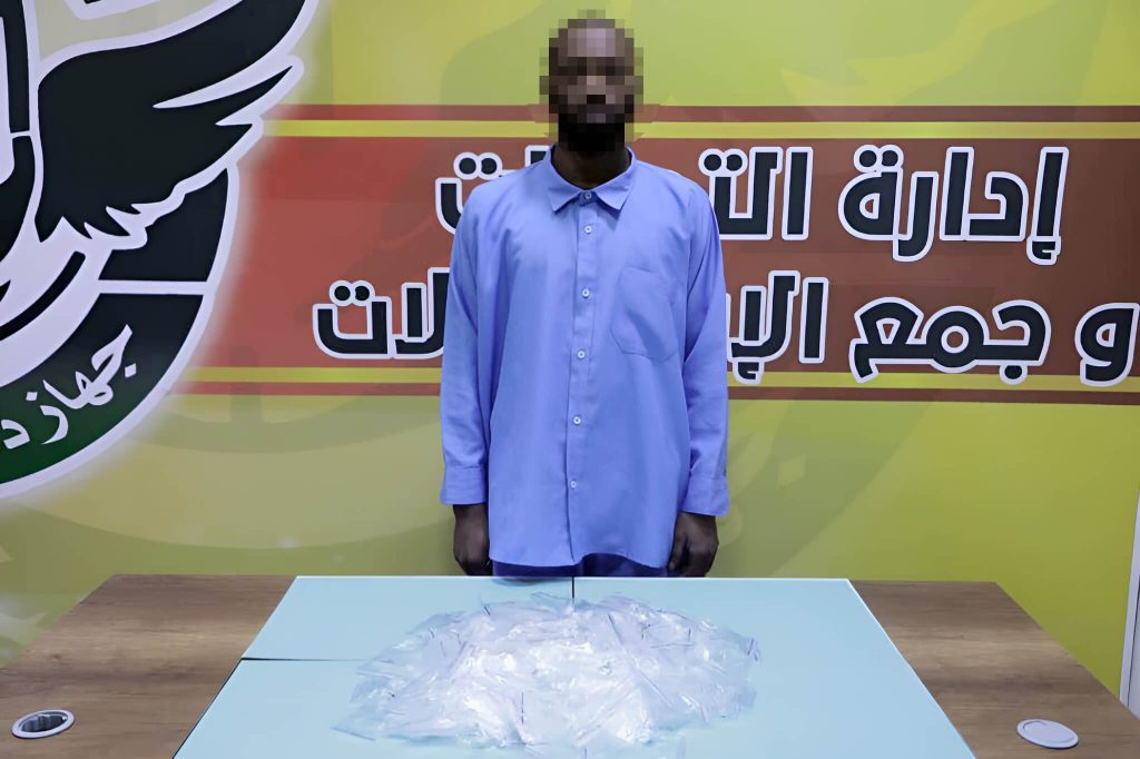 تواصلاً لعمليات جهاز دعم الاستقرار الأمنية في محاربة الاتجار بالمخدرات والمؤثرات العقلية، تمكنت إدارة التحريات وجمع الاستدلالات من ضبط شخص أفريقي الجنسية بمنطقة مشروع الهضبة الزراعي وبحوزته 384 كيساً تحتوي على مسحوق أبيض يُشتبه في كونه مادة الكوكايين المخدرة لغرض الاتجار بها.